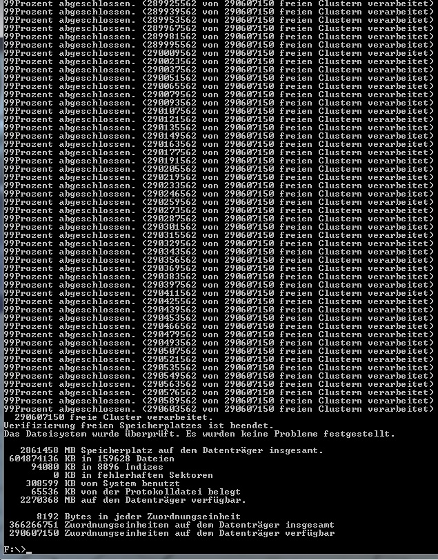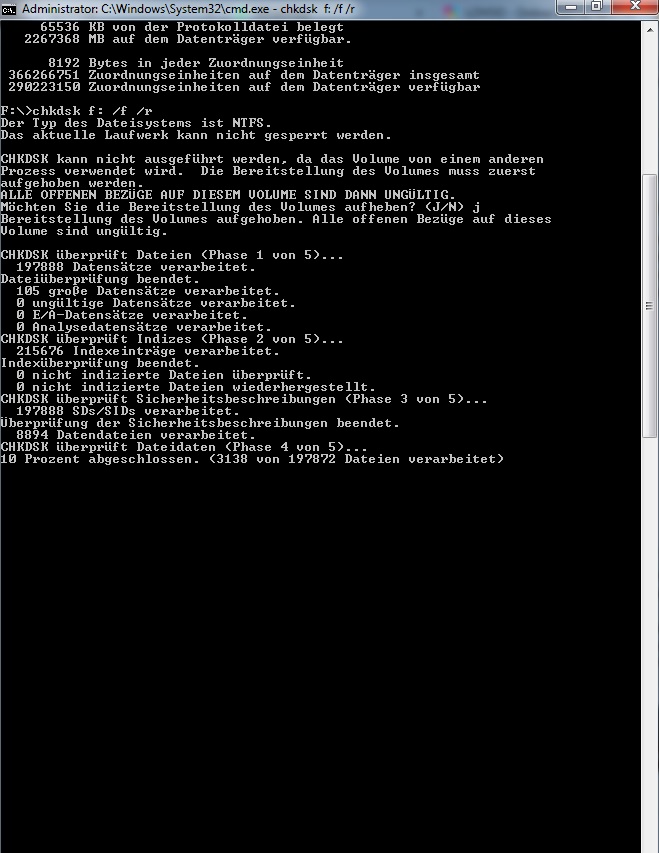 er hat aber wohl den befehl erkannt, kam ja die meldung mal sollte scandisk benutzen weil da besser nach fehlern suchen könne.