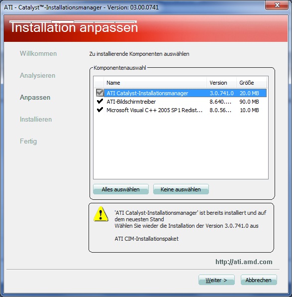 Ja, wenn ich CCC runterlade, bietet mir das Setup gleich gar kein CCC an, ob ich den Mobility Treiber oder den normalen Treiber nehme spielt dabei keine Rolle.