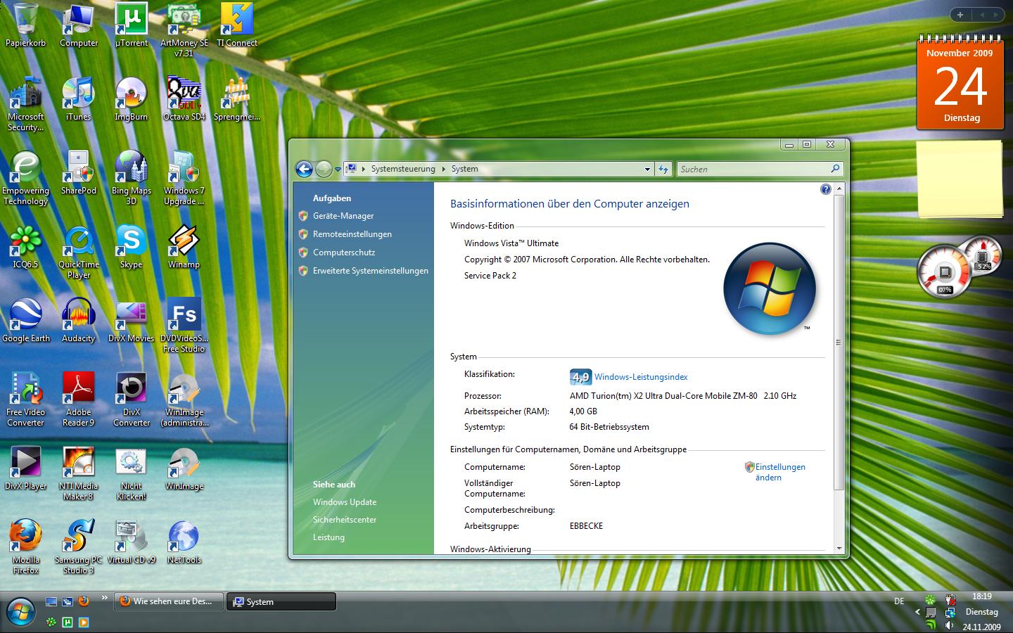 Mein alter Laptop lebt noch und hat folgende Daten: