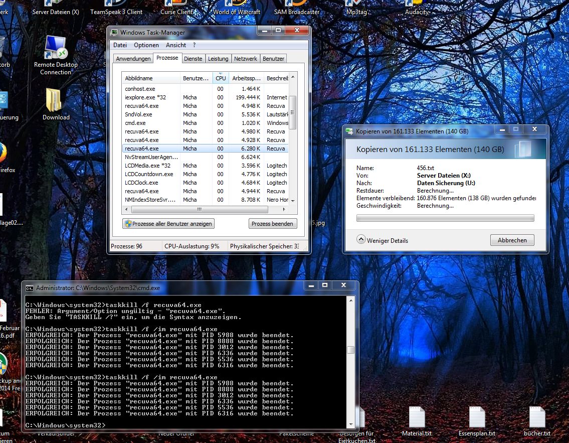 - Ich starte einen Kopiervorgang, das System bleibt ewig stehen bei "Berechnung"
